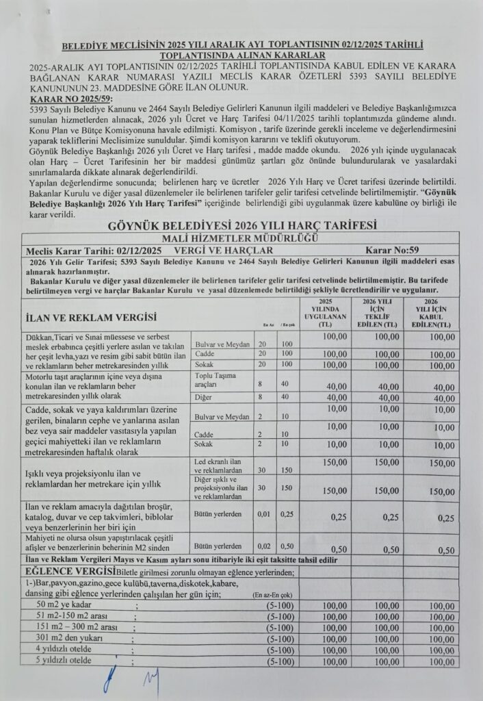 2025 YILI ARALIK AYI MECLİS TOPLANTISI KARARLARI Göynük Belediyesi 46 dakika önce Duyurular, Göynük Belediyesi 2025 YILI ARALIK AYI MECLİS TOPLANTISI KARARLARI için yorumlar kapalı 5 Görüntüleme Benzer Başlıklar SU SAYACI DEĞİŞİMİ 30 Ekim 2025 KURBAN BAYRAMI MÜNASEBETİYLE ŞEHİT AİLELERİMİZE BAYRAM ZİYARETİ VE KAMU PERSONELİ-HALK BAYRAMLAŞMASI PROGRAMI GERÇEKLEŞTİRİLDİ. 8 Haziran 2025 TARİHİ GAZİ SÜLEYMAN PAŞA HAMAMI AÇILIŞI GERÇEKLEŞTİRİLDİ. 3 Haziran 2025 2025-12-09 Göynük Belediyesi Paylaş Facebook Twitter