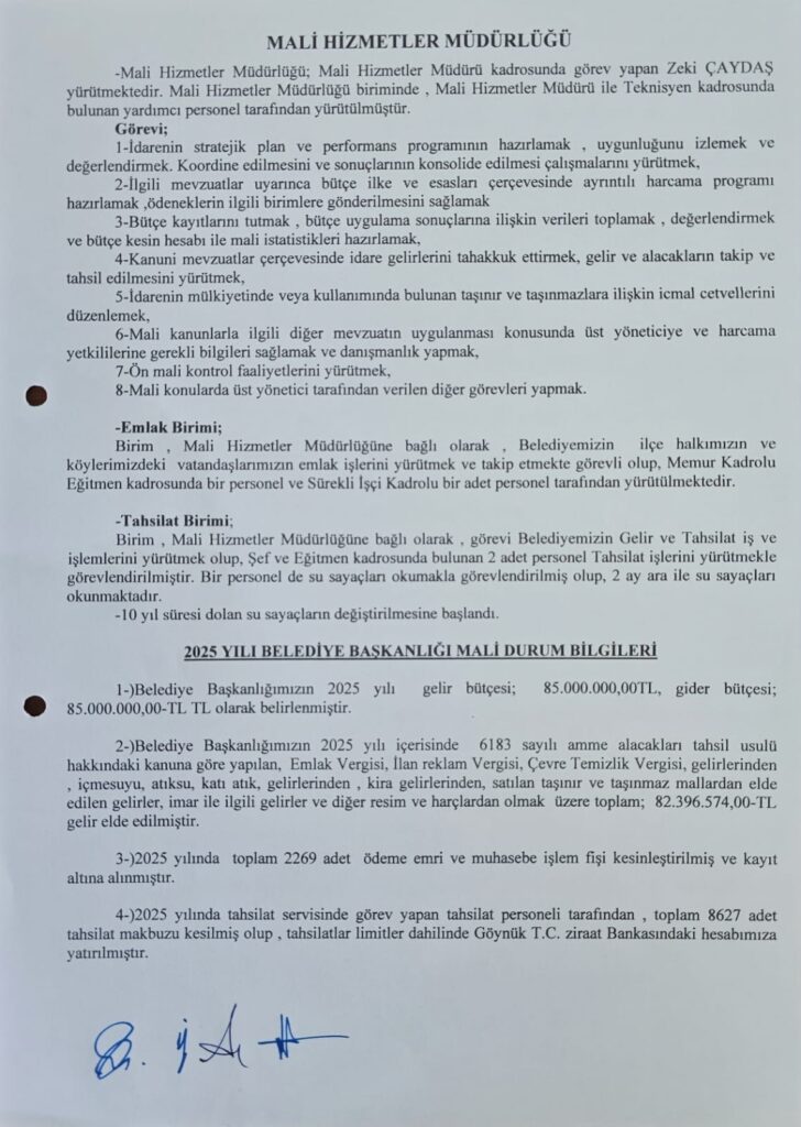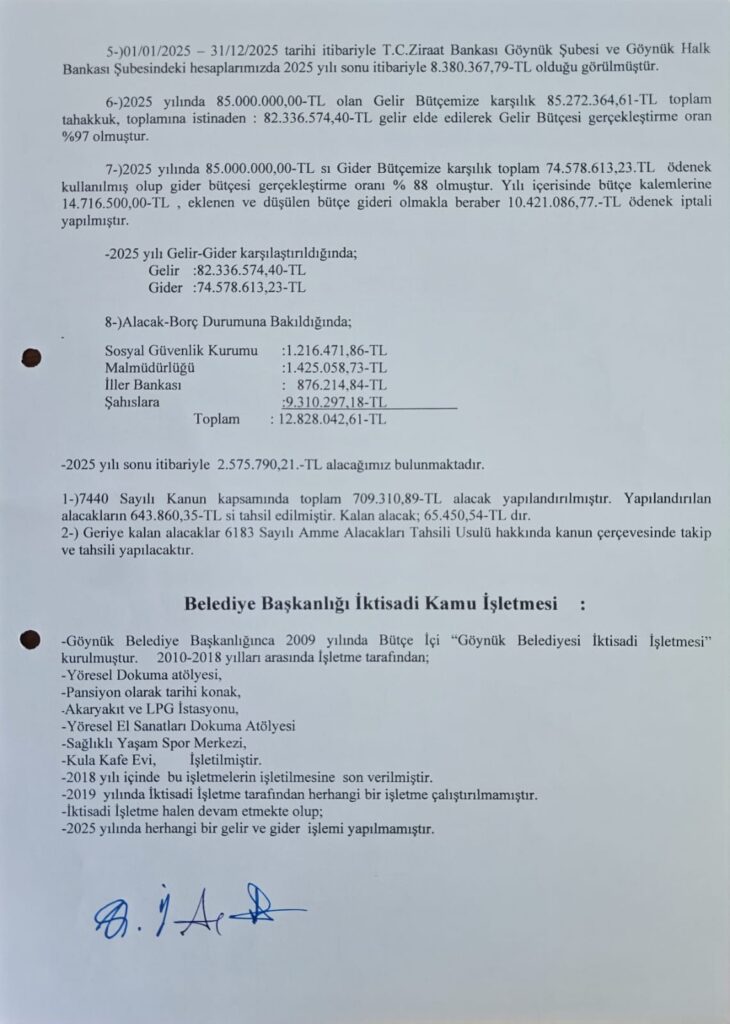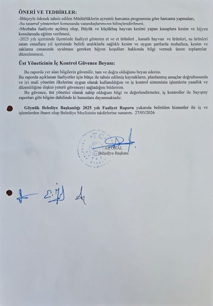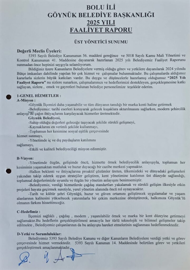 GÖYNÜK BELEDİYESİ 2025 YILI FAALİYET RAPORU Göynük Belediyesi 8 saat önce Duyurular, Göynük Belediyesi GÖYNÜK BELEDİYESİ 2025 YILI FAALİYET RAPORU için yorumlar kapalı 23 Görüntüleme Benzer Başlıklar 2026 YILI NİSAN AYI MECLİS TOPLANTISI ALINAN KARARLAR 5 gün önce RAMAZAN BAYRAMI MÜNASEBETİYLE ŞEHİT AİLELERİMİZE BAYRAM ZİYARETİ VE KAMU PERSONELİ-HALK BAYRAMLAŞMASI PROGRAMI GERÇEKLEŞTİRİLDİ. 4 hafta önce BELEDİYE BAŞKANI ALİ ORAL’IN YENİ YIL MESAJI 31 Aralık 2025 2026-04-15 Göynük Belediyesi Paylaş Facebook Twitter